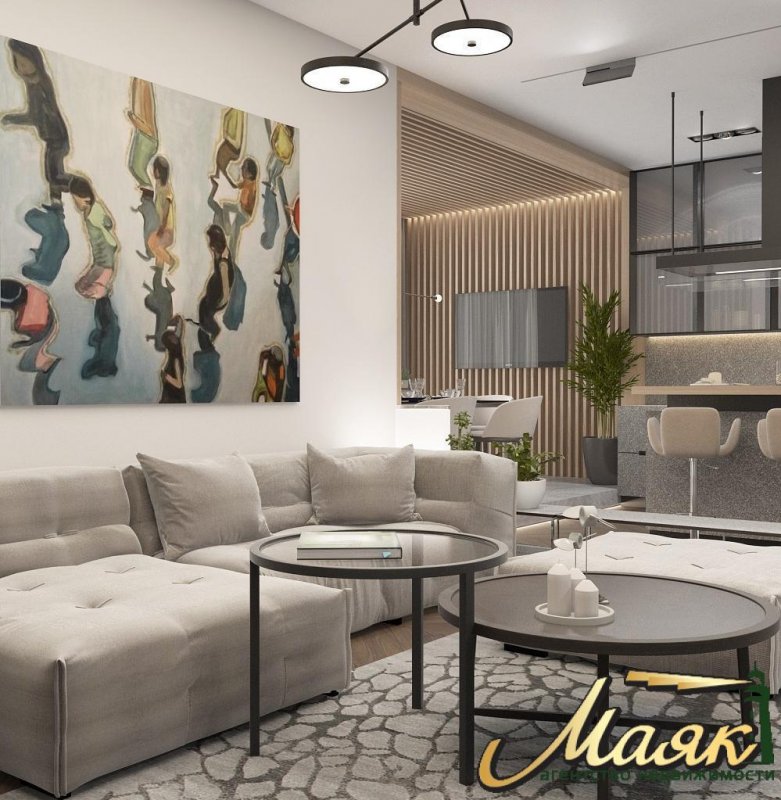 В квартире: кухня-студио, 2 отдельные спальни (1 мастер-спальня со своим сан-узлом и гардеробной), гостевой сан-узел и гардеробная комната.