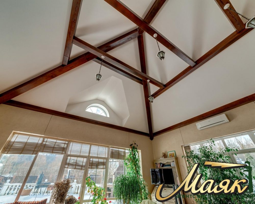 Дизайн интерьера выполнен в классическом стиле, всевозможные оттенки коричневого, шампани и благородная бронза во внутренней отделке подчёркивают роскошь и безупречный вкус собственника. А натуральное дерево придаёт ощущение уверенности, постоянства и уюта. Мебель от ведущих итальянских производителей Savio Firmino, Arca, и т.п. - элегантно дополняют единый ансамбль. В отделке стен использованы шелковые и жаккардовые обои ведущих английских фирм, штукатурка и натуральное дерево. Светильники от передовых производителей Италии и Испании. Дорогой текстильный декор окон и интерьера выполнен из натуральных тканей (производство Италия и Германия). Покрытие пола выполнено: 1 этаж - мрамор (Испания), художественный паркет; 2-этаж - дерево. Санузлы выполнены в плитке Сaesar (Италия).
