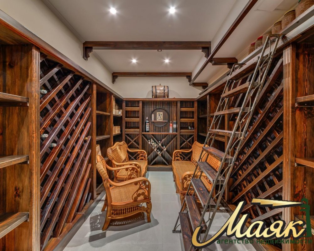 Двухэтажный: кухня, гостиная, сан узел, винный погреб, кладовая и две спальни
