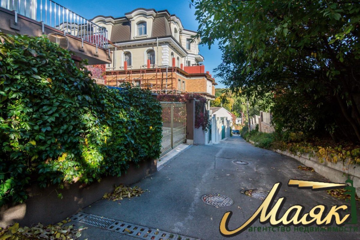 Общей площадью 1466,4 м². 5 этажей + мансарда + цоколь, 2 террасы с панорамным видом на Ботанический сад; гостиная, кухня с зоной столовой, 4 спальни, кабинет, библиотека, столовая, барная зона, бильярдная, кинотеатр, 2-я гостиная, 8с/у , 3 душевые, 3гардеробные, комната охраны, технические комнаты.