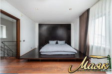 На первом уровне располагается просторная кухня, столовая и гостиная зона, гостевой санузел, постирочная, кабинет. На втором уровне располагается спальная комната с гардеробом и большим санузлом.