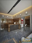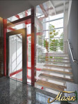 Изысканная внешняя и внутренняя отделка здания, выполненная с использованием натурального гранита, мрамора и тропических пород красного дерева, из которых сделаны даже ступени лестницы, удовлетворят самый требовательный вкус, а стеклянные витражи, керамогранит, композитный профиль и красное дерево придают зданию элегантный вид, излучающий одновременно технологичность и респектабельность.